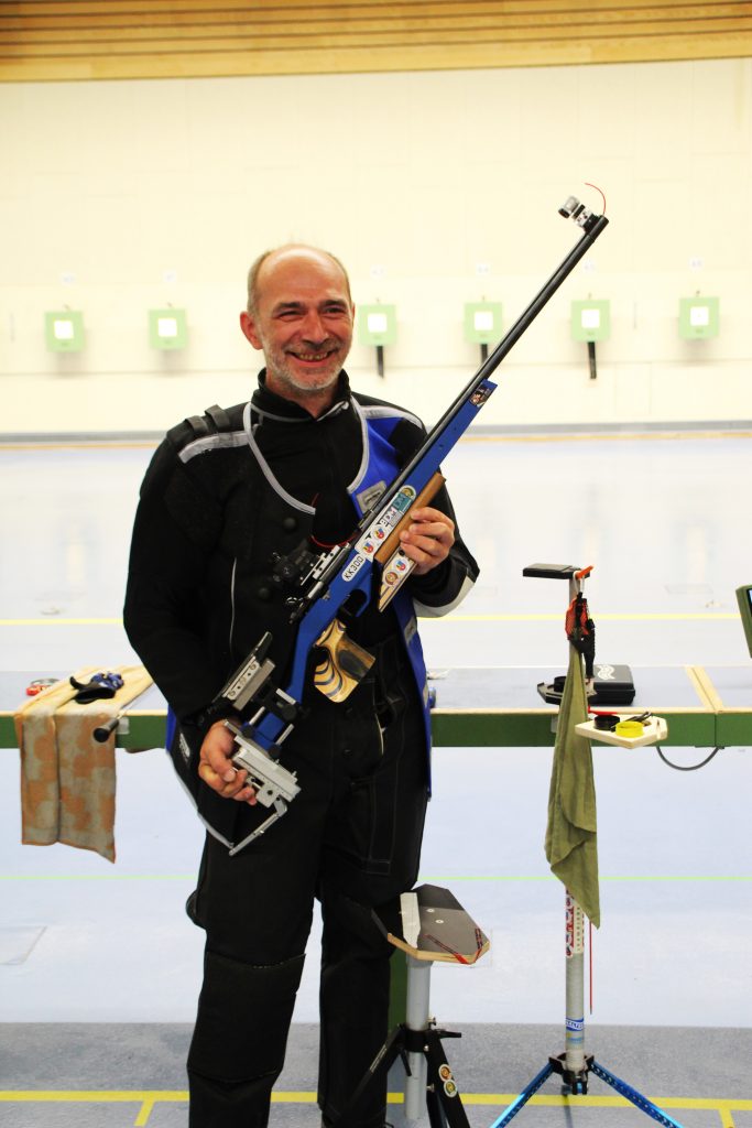 Der 45jährige, passionierte Sportschütze, holt sich damit das dritte mal den Titel Deutscher Meister mit dem Zimmerstutzen.